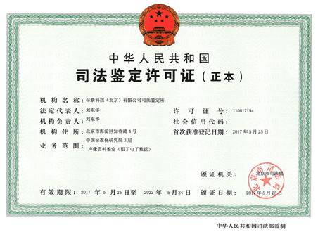 標新司法鑒定所隸屬于中國標準化研究院,是一家國有獨資、面向社會服務的第三方司法鑒定機構,主要從事電子數據存在性鑒定、真實性鑒定、功能性鑒定、相似性鑒定業務。標新司法鑒定所資質齊全,具備司法鑒定許可證(證號:110017154),已通過檢驗檢測機構資質認定(證書編號:180107030669)和實驗室認可(資格證號:CNASL12316)。專業技能扎實,成立以來每年均參加司法部司法鑒定科學研究院組織的能力驗證并獲得滿意評價結果。