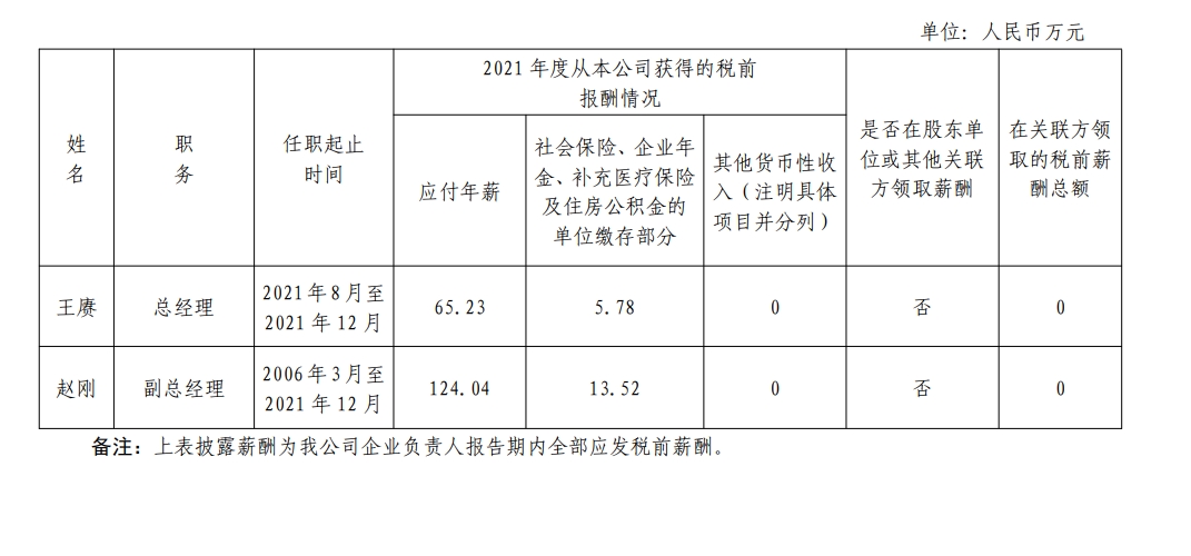 中國標準科技集團有限公司企業負責人2021年度薪酬情況