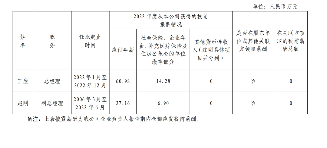 中國標準科技集團有限公司企業負責人2022年度薪酬情況