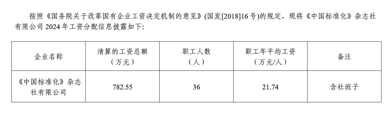 2024年《中國(guó)標(biāo)準(zhǔn)化》雜志社有限公司工資分配信息披露