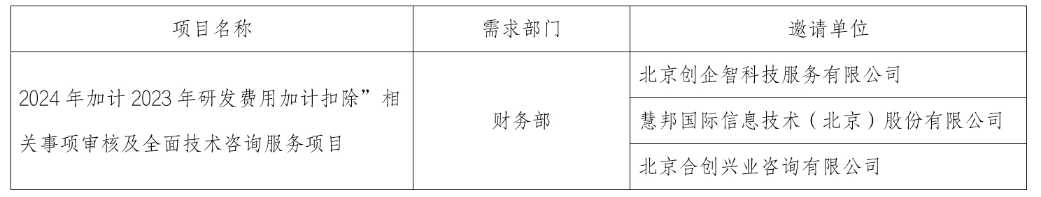 按照《中國(guó)標(biāo)準(zhǔn)科技集團(tuán)有限公司采購(gòu)工作管理辦法(試行)》要求,現(xiàn)對(duì)“2024年加計(jì)2023年研發(fā)費(fèi)用加計(jì)扣除”相關(guān)事項(xiàng)審核及全面技術(shù)咨詢服務(wù)項(xiàng)目競(jìng)爭(zhēng)性談判邀請(qǐng)單位進(jìn)行公示。